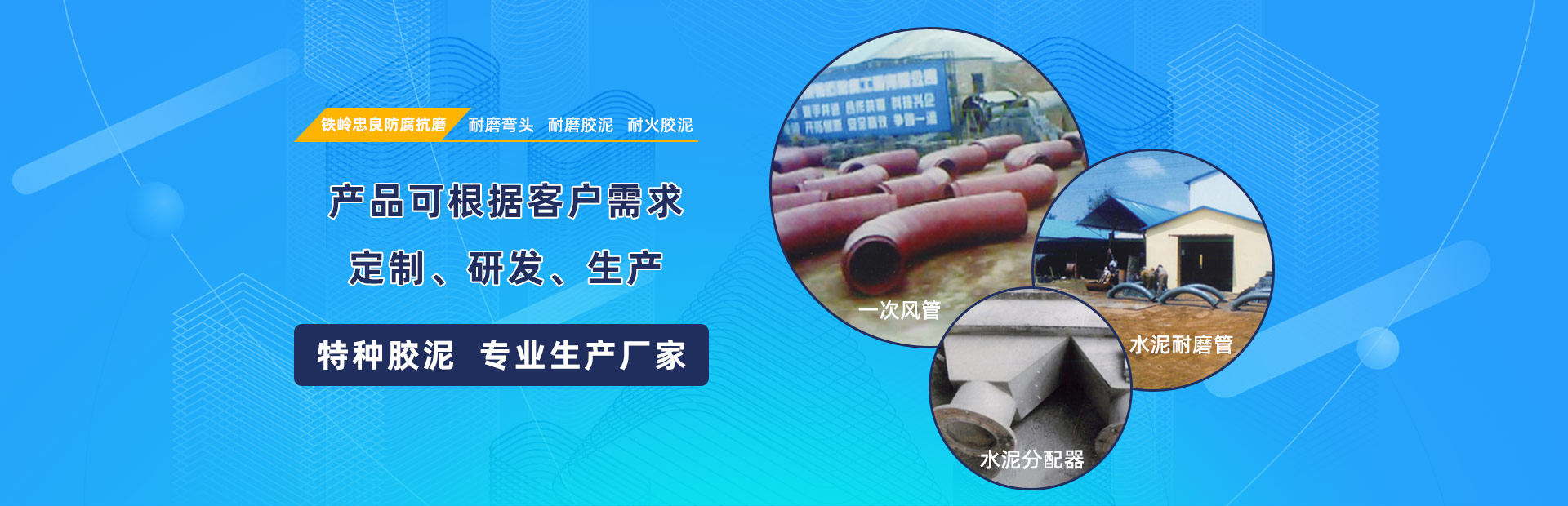 鐵嶺忠良防腐抗磨有限公司是專業從事工業用不定型耐磨、耐腐蝕、耐火材料和建筑民用特質膠泥、開發、生產、安裝、技術服務耐磨備件銷售為一體的綜合服務型企業。公司成立于2004年3月19日,多年來被政府相關部門評為“優秀民營企業”、“誠信示范企業”、“守合同重信用企業”、“AAAAA 級信用企業”、“遼寧省中小企業專精特新產品”、“A級納稅企業”,現有多項新型和發明專利。